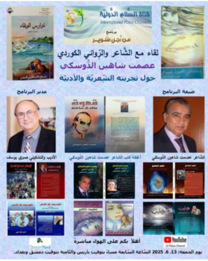 * الشاعر عصمت شاهين الدوسكي أهلاً بك في قناه السلام الدوليه، عبر برنامج من أجل التنوير، مساء الخير: